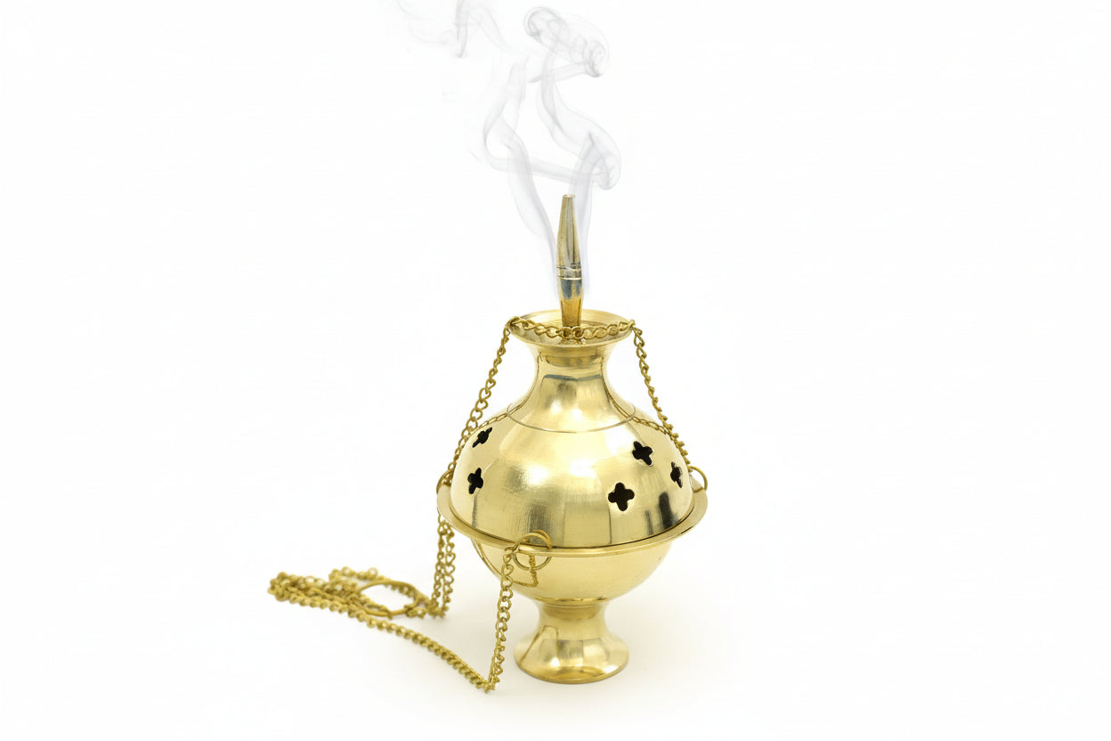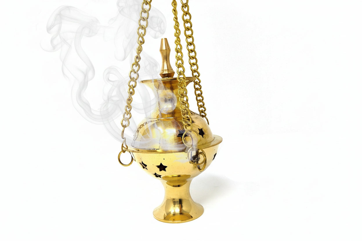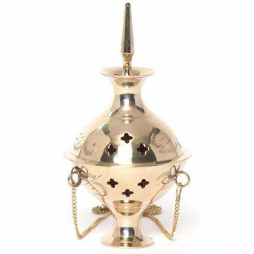 Use this hanging brass Incense burner a few times a week to burn resins and herbs to clear your home. This is a tough little pot that's not too big or too small as smudging accessories.